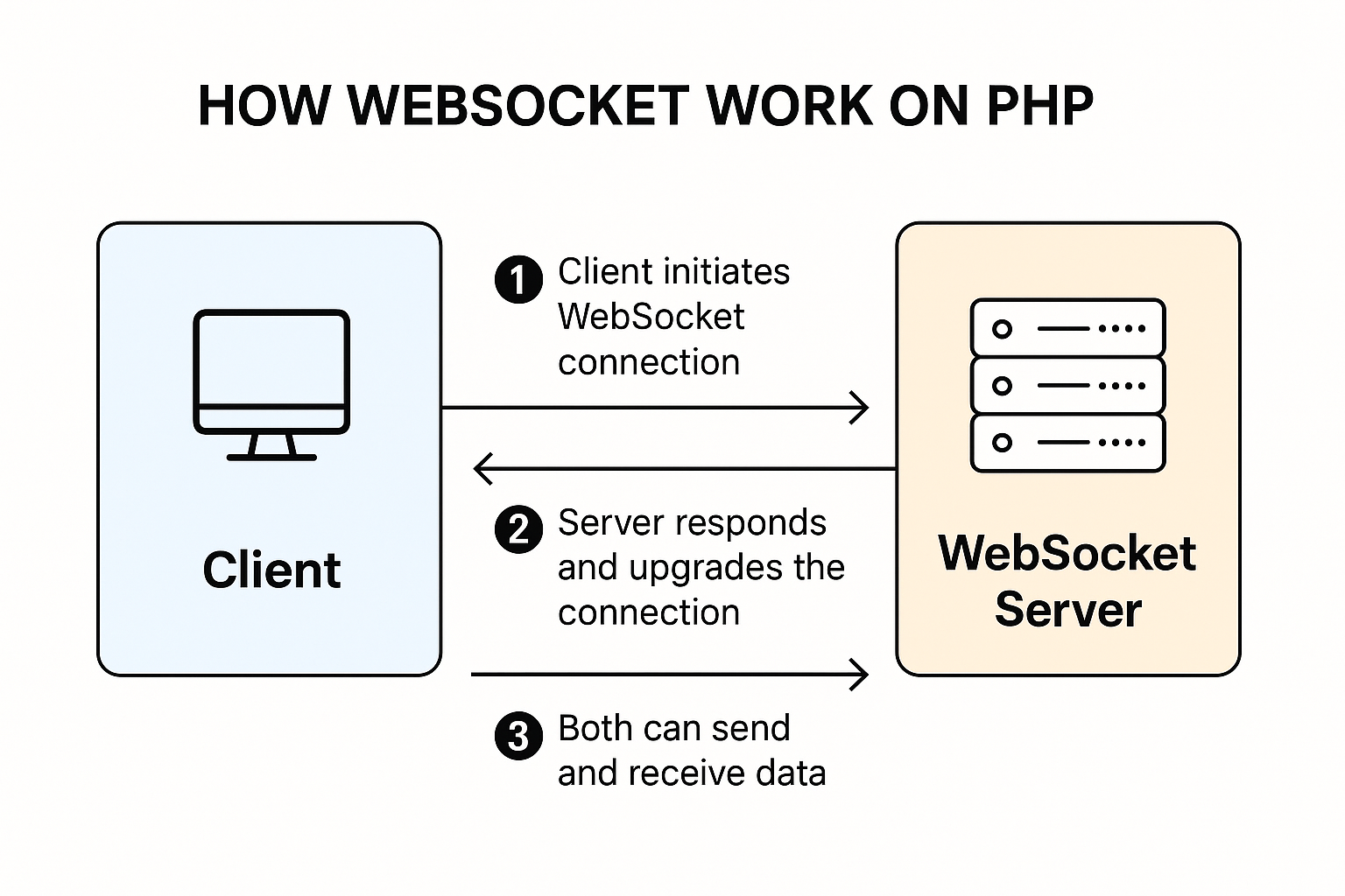 WebSockets allow two-way, real-time communication between the server and client over a single, persistent connection. In PHP, you can implement WebSockets using either: